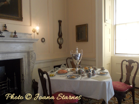 What an amazing place! You can absorb Georgian lifestyle in every room, but the dining room is out of this world – literally. To say that it’s exquisite is simply not enough. I love it! And even more so because every detail of the beautifully ornate table and sideboard brings to mind an elegant, yet quite intimate dinner that our dear Mr and Mrs Darcy might have hosted. You can almost see them sitting to partake of the confectionery that can’t fail to please the eye (the palate – not so much; the display is made of silicone and other materials. There are fascinating details in the house about the project undertaken several years ago, when real moulds from the kitchen were used to make working moulds, and the latter used to create the beautifully intricate confectionery).
