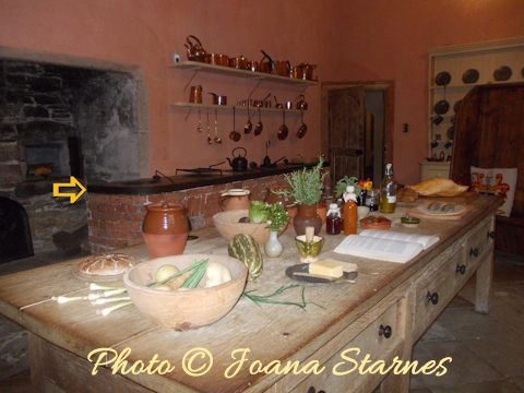 Most of the time, a fire was also burning under a large lidded copper vessel (4) to provide a constant supply of hot water for the kitchen and the rest of the household. Bread was baked in a separate brick oven that could be found either in the kitchen or in the bakehouse. Kitchen ranges started making an appearance from 1780, and included a closed oven to one side and a boiler on the other.