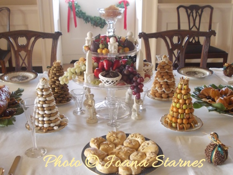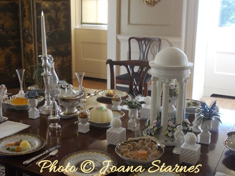 It’s a pity that, however dedicated and determined we might be, we can’t really hope to recreate the atmosphere and the lavish display of a Pemberley dinner. We don’t live in grand houses, we don’t have an army of (underpaid) kitchen maids and scullions, and we can only dream about Mr Darcy and his French cooks. But we can feast our eyes on dinner tables laid out as if in expectation of Mr and Mrs Darcy’s guests.