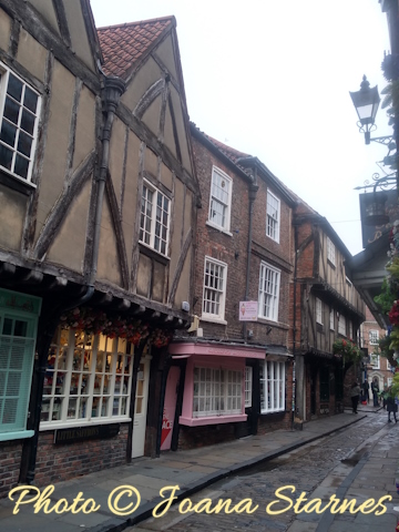 And this, in a nutshell, is what I love the most about York: you can see how it grew, one layer of history over another, and the clues and artefacts are still there for us to discover, such as the murals in the York Minster Undercroft; or the fragment of a Roman column used as a base for a timber frame post when medieval builders erected one of the nine buildings that now form the Old White Swan; or the numbers carved into the timber frame of a house on High Petergate, telling us that it was built in 1646; or the Shambles, where haunches of meat are no longer on display, but the ancient street is lined by the same buildings that stood there since the 1400s.